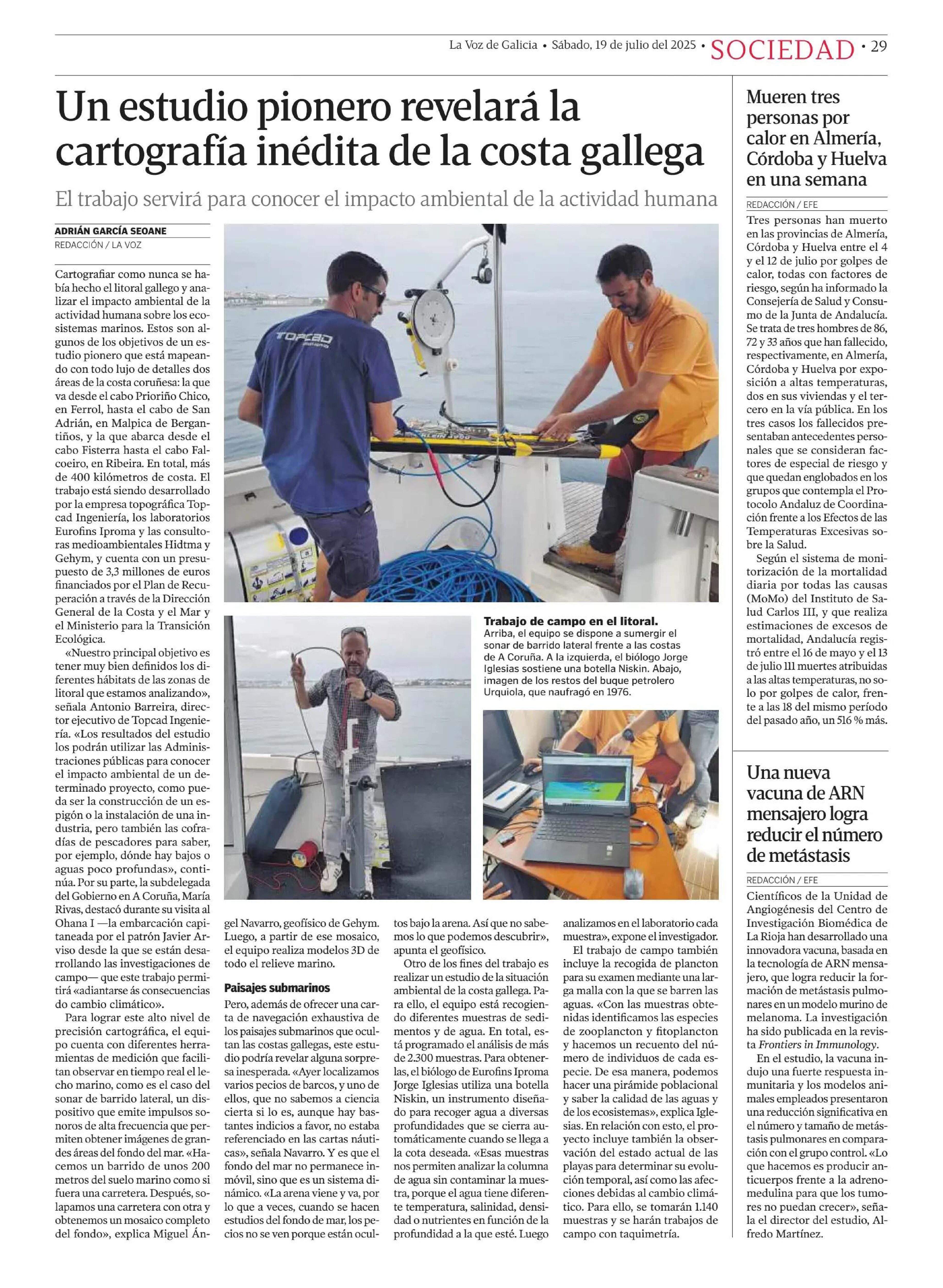 Gehym está trabajando en la cartografía marina del litoral gallego para un mayor conocimiento del medio. La Voz de Galicia se ha hecho eco de nuestro trabajo en este artículo.